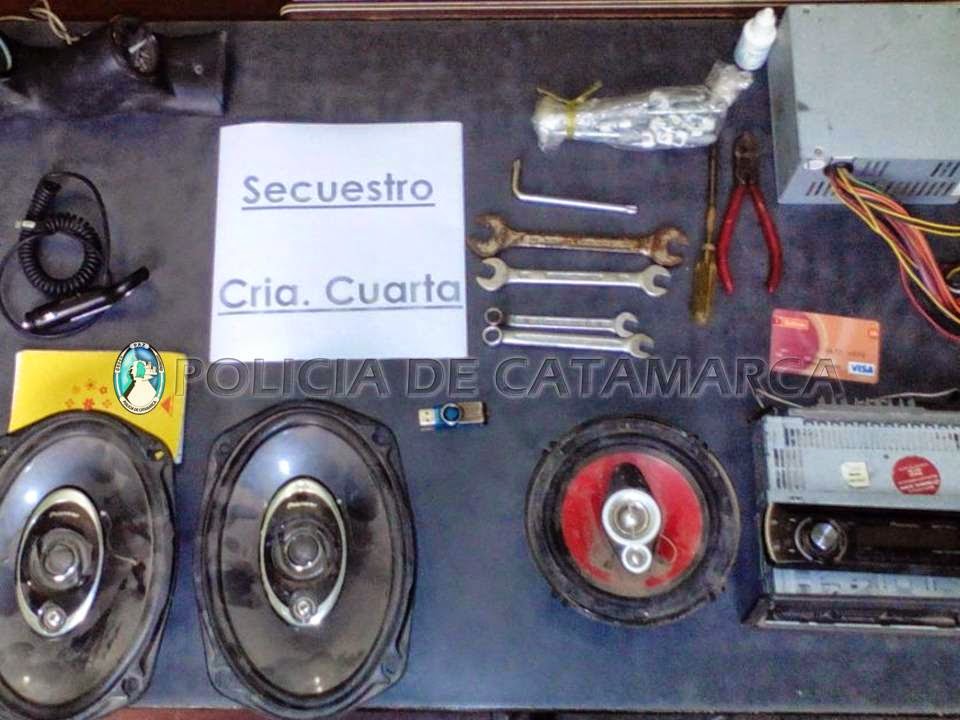 El personal interviniente, secuestró un estéreo Pioneer, cuatro parlantes, un pen drive de color azul, un cargador para teléfonos celulares, un juego de cuatro llaves de boca, un destornillador, una pinza, relojes indicadores para auto (aceite, agua y cuentavueltas), partes de una CPU y una tarjeta del Banco Galicia a nombre del damnificado.