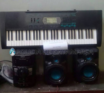 Al llegar al lugar, se entrevistaron con vecinos y brindaron algunas características de los sujetos, por lo que se solicitó colaboración a otras dependencia policiales y luego de realizar un rastrillaje en un descampado ubicado en las inmediaciones, encontraron oculto un órgano musical Casio con sus cables respectivos, un centro musical Noblex con control remoto, y un par de parlantes para PC.