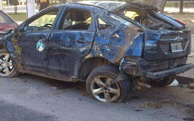 Guillermo Armando Bulacios (42), circulaba en un automóvil Ford Focus (IGE-389), de color azul, acompañado por Carla Guadalupe Caro (28), y por causas que se investigan perdió el control del rodado y terminó volcando en inmediaciones a la zaranda perimetral del predio.