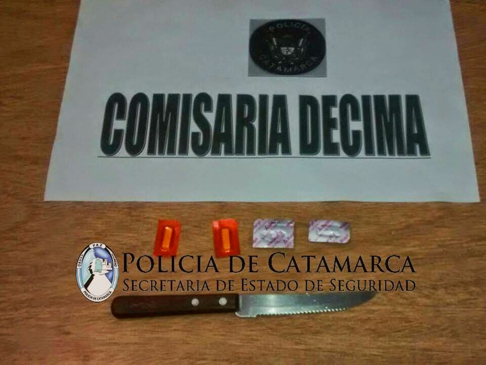 Al sujeto de apellido Luján, de 19 años de edad, tras la requisa correspondiente, se le encontró un cuchillo -tipo Tramontina- y cuatro pastillas de Clonazepam, por lo que finalmente fue trasladado a la dependencia policial en calidad de arrestado en averiguación de actividades y medios de vida.