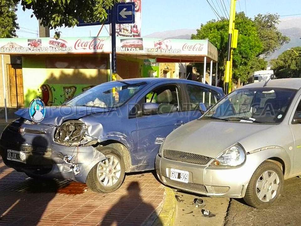 Hoy a las 08.00, en la esquina de las avenidas Belgrano y Ramón Luna, un Ford K (GUV-909), de color gris, que conducía Alisa Marcolino (58), por razones que se tratan de establecer, colisionó con un Fiat Palio (OJK-918), de color azul, al mando de Osvaldo Rafael Alzú (39), quien iba acompañado de un niño de 11 años de edad, oriundos de Fiambalá (Tinogasta).