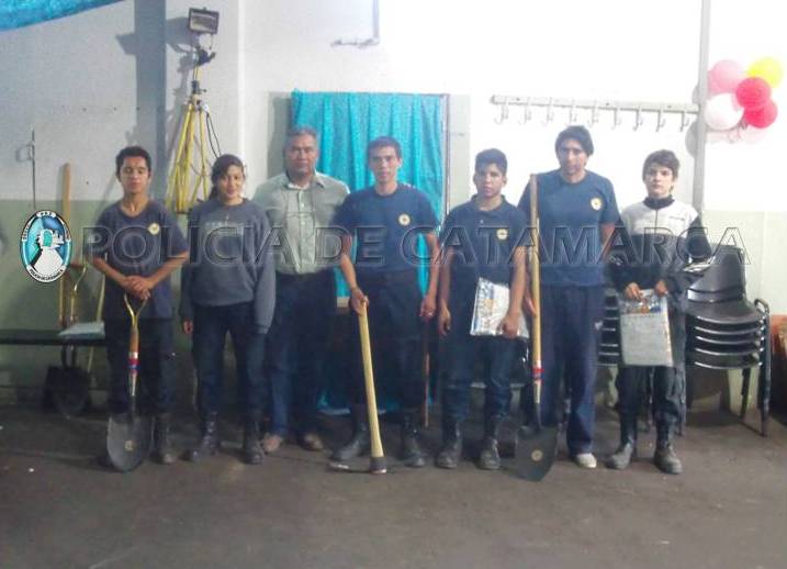 Finalmente, el Director de Bomberos de la Provincia Comisario General Miguel Rolando Ramos, hizo entrega a integrantes de los Cuerpos de Bomberos Voluntarios, a modo de reconocimiento, elementos de trabajo tales como palas cabo largo cuadrada, palas de punta corazón, hachas y picotas.-