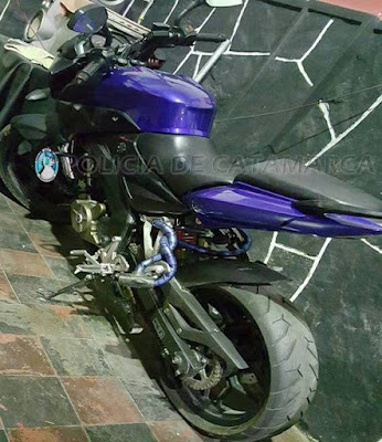 Al momento de la aprehensión, éstos sujetos tenían en la caja de la camioneta una motocicleta Bajaj Rouser 200cc., de color azul, que sustrajeron de calle Gral. Roca al 200.