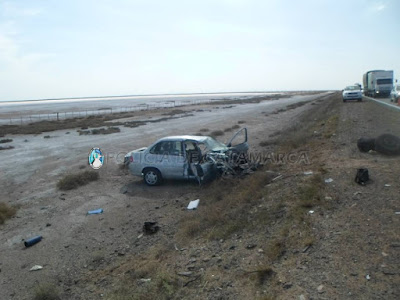A las 15:30 de la tarde de hoy, en la Ruta Nacional Nº 60, a unos 5 Km. del Puesto Caminero de Las Salinas, Dpto. La Paz, se produjo un siniestro vial.