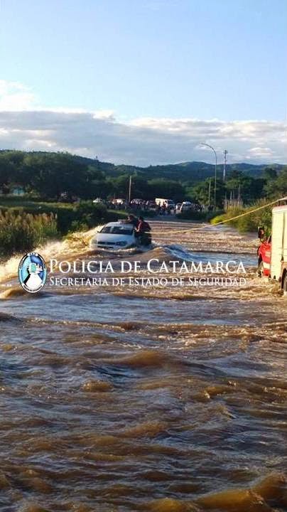 Hoy, a las 17:30, efectivos de la Comisaría Tercera tomaron conocimiento que en la calle Camino de la Virgen, a la altura del badén del Rio del Valle, un automóvil era arrastrado por el agua.