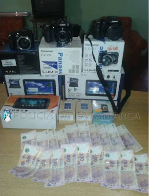 Luego de realizar tareas investigativas, el personal policial interviniente secuestró la suma de dos mil pesos en efectivo ($2000), tres (3) teléfonos celulares, tres (3) tablet, y en la mañana de hoy, a las 11:00, hicieron lo propio con tres (3) cámara digitales, que habrían sido sustraídos de un local comercial ubicado en inmediaciones a la plaza principal de Santa María.