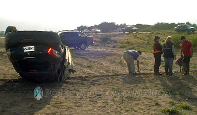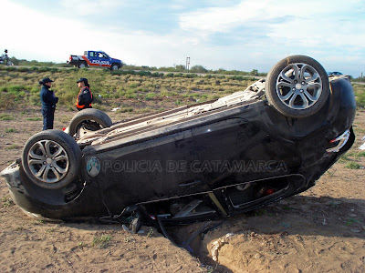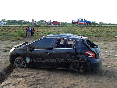 Al arribar al lugar, constataron que un automóvil Peugeot 208 (NCS-625), de color negro, conducido por Lautaro Diego Sosa (18), acompañado por Marcela Inés Rou (43), por causas que se tratan de establecer, terminó volcando en la banquina.