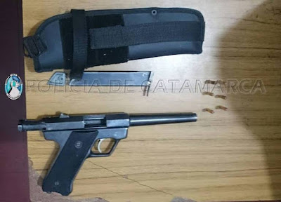Ayer, a las 15:40, tras ser alertados por el Comando Radioeléctrico, efectivos de la Comisaría Primera se constituyeron en la calle Rivadavia entre República y Esquiú, y procedieron a la aprehensión de Daniel Omar Lujan (65), quien mientras conducía un automóvil Volkswagen Voyage, (NKK-259), de color gris, taxi Lic. N° 352, habría mantenido una discusión con un hombre de 47 años de edad, de apellido Bordón, conductor de un automóvil Chevrolet Lumina, (MQU-735), de color blanco, y lo amenazó con una pistola calibre 22, marca Saurio, que contenía seis municiones en el cargador y quedó en calidad de secuestro.